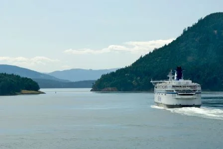 For non-avian transit between Vancouver and Victoria, the BC Ferries car ferry from Vancouver (Tsawwassen, just south of the city) travels through the spectacular Active Pass with opportunities to see whales, seals, and eagles (a 90-minute ride) before docking in Swartz Bay (about 45 minutes north of downtown Victoria). If you plan to drive a car onto the ferry, you may wish to buy a reservation (so that if you arrive at least 30 minutes in advance of the sailing time you will be assured a spot on the boat). A Pacific Coach Lines bus from downtown Vancouver or the Vancouver airport crosses on the same ferry route and passengers disembark from the bus within 150 m of the conference hotel. If you get to the Tsawwassen ferry terminal in a cab or by some other means and want to sail as a walk-on, you can buy a Pacific Coach Lines bus ticket on board the ferry and then get on the bus shortly before the ferry docks.